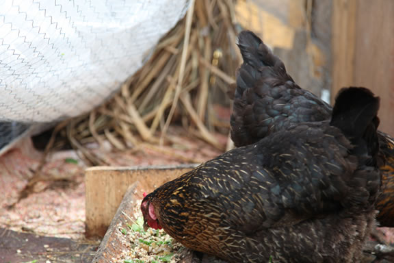 < | chickens | > Lunch from the trough, picture by Mira Hunter.