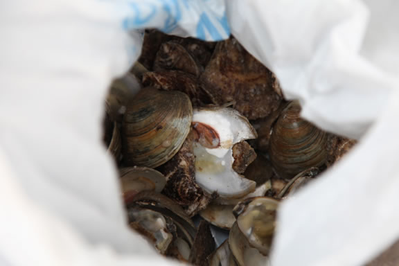 < | chickens | > Oyster and clam shells donated by Randazzo's Clam Bar in Sheepshead Bay, Brooklyn, picture by Mira Hunter.