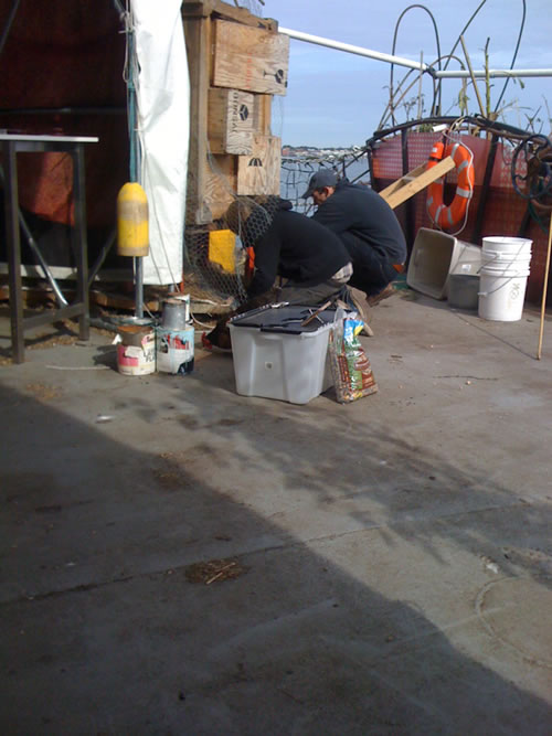 < | Chickens | > Ian Daniel and Tighe Lanning preparing the coop for transport.